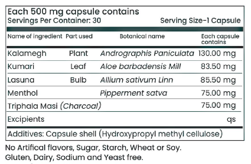 Biotex Active Charcoal+ is an ayurvedic proprietary nutraceutical formulated with a combination of traditionally used botanicals such as kalmegh, kumari, lasuna, menthol, and triphala along with charcoal. The formulation is designed to be used as a dietary supplement to support daily nutritional intake. It is suitable for adult men and women and should be consumed as part of a balanced diet and healthy lifestyle. This product is not intended to diagnose, treat, cure, or prevent any disease and should not be used as a substitute for a varied diet. NOT FOR MEDICINAL USE.Suggested Use