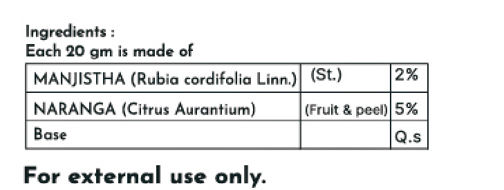 Ayurvedic proprietary cream formulated with Manjistha and Citrus extracts for gentle external skin care and comfort.